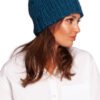 The beanie, made of warm thick-weave yarn with a ribbed brim, will protect against the cold and will be an interesting addition to winter coats and jackets.