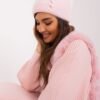 Winter warm hat with braided pattern. On the front an interesting application.
