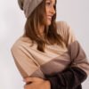 Warm women’s winter hat made of smooth knit fabric with decorative applique on the side.