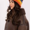 This cute winter beanie is the perfect choice for cold days. Made of soft and warm material, it perfectly protects from the cold for comfortable wearing. Its design is eye-catching thanks to colorful stripes in vibrant shades, which give the cap a cheerful and fashionable look. At the top of the cap is a large, fluffy pom-pom, which adds to its charm and character. The cap is flexible, so it fits well to different head sizes. It’s a stylish and functional accessory that will be great for both everyday walks and winter outdoor activities. Ideal as a gift for lovers of practical and aesthetic accessories.