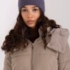 Winter warm hat with a braided pattern. Interesting application on the front.