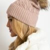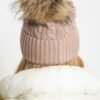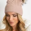 Winter hat with a wide cuff and fluffy pompom.