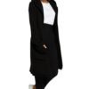 Long warm unbuttoned cardigan with a hood, will serve as an outer garment on cooler days. On the front pockets.