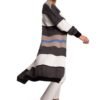 Long, tactile cardigan with a unique pattern of multicoloured horizontal stripes.