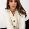 Women’s sweater with long sleeves, button closure, and a heart neckline.