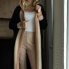 Loose cardigan with long sleeves and a hood. The cardigan is unbuttoned, with slip pockets. The cardigan is soft and fluffy to the touch.