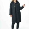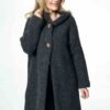 Hooded cardigan with two decorative buttons, matching sleeves, no pockets.