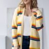 Cardigan in a loose cut without a button-up, with long sleeves. Sweater with colorful stripes.