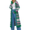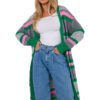 Colorful long cardigan in thick weave, unbuttoned with long sleeves. Designed and manufactured in Poland.
