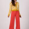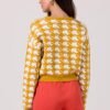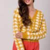 A short unbuttoned sweater in pepit will add style to any of your outfits! Made of soft, body-pleasing acrylic yarn, it is perfect for colder days. The unique design with decorative buttons and smooth pleating all around adds to its elegance, while the lowered shoulder line gives it a fashionable expression. The long sleeves and hem finished with a ribbed hem ensure a perfect fit. It’s a great choice for work, a meeting with friends or an evening dinner. Wear it in an elegant version with cigarette pants and heeled boots, or if you feel like it, combine it with jeans and workers. Add it to your collection, style it in many ways and feel the unique harmony between comfort and fashionable look. Made in Poland.