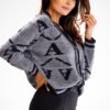 Two-tone short sweater buttoned up. At the sleeves and the bottom of the sweater is a ribbed hem. Soft and warm, it will be perfect for autumn and winter styling.