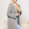 Casual cut cardigan with long sleeves and a hood. Cardigan without a fastener, asymmetrical bottom.