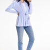 A cute, loose sweater with a shawl collar, perfect for spring and summer evenings. It is a straight cut product, which comes with a belt made of the same material, to be tied at the waist.