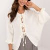 Women’s casual sweater, ideal for everyday occasions. It is distinguished by a smooth pattern, which gives it a minimalist, universal character. Made of soft acrylic, it provides comfort and convenience for everyday wear. The sweater has a standard length and 3/4-length sleeves, which add lightness and casual style. Instead of traditional buttons, the sweater has a three-tie binding, which adds originality and a fashionable look. An ideal choice for casual everyday outfits.