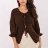 Women’s casual sweater, perfect for everyday occasions. It stands out with a smooth pattern, giving it a minimalist, universal character. Made of soft acrylic, it provides comfort and everyday wear. The sweater has a standard length and 3/4 sleeves, adding lightness and a casual style. Instead of traditional buttons, the sweater has a tie with three strings, adding originality and a fashionable look. An ideal choice for everyday, casual stylings.