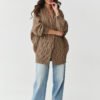 Stylish, warm, and extremely comfortable women’s cardigan is a must-have in every autumn-winter wardrobe. Made of high-quality yarn consisting of 85% acrylic and 15% polyamide, it impresses with its softness, durability, and resistance to deformation. The characteristic thick weave in the form of braided plaits gives it a unique character and makes every outfit look fashionable and cozy. Thanks to the oversized cut, the sweater guarantees freedom of movement and comfort of wearing, and the lack of fastening makes it easy to pair with a T-shirt, top, or elegant shirt. It is an excellent choice for both everyday wear and cooler evenings. The cardigan is available in several basic shades: beige melange, cappuccino, black, graphite melange, and gray melange, so every woman will find a color that suits her style.