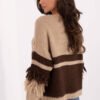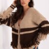 Two-tone women’s sweater is a fashionable element of casual wardrobe, perfect for everyday outings and various occasions. Made of a blend of polyacrylic, polyamide, wool and viscose, it provides warmth, comfort and pleasure to wear. The V-neck and button closure add an elegant character to it. Long sleeves and standard length guarantee comfortable wearing. Fringes on the front and sleeves introduce an original, slightly boho accent, giving the sweater a unique style. This is a sweater that combines comfort, functionality and trendy design, perfect for casual and stylish outfits.