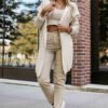 The loose fit with a practical hood and a LOVE patch gives it a unique character, and trendy cuffs on the sleeves add a slightly sporty, modern style. The beige color makes the cardigan perfect for both casual and elegant stylings.