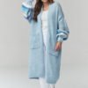 A long women’s sweater is the perfect choice for women who value comfort and style in their everyday outfits. The cardigan-style model stands out with its loose fit and soft touch fabric, providing comfort throughout the day. The oversized sweater drapes nicely on the silhouette and allows for creating trendy, layered looks. Practical cardigan with pockets combines functionality with fashionable design. The large pockets add character to it, and the longer length makes the long women’s cardigan perfect to pair with both pants and leggings or dresses. Decorative knit and stylish sleeve finish give it a unique look. This versatile women’s sweater for everyday wear will work in many outfits, from casual to more elegant ones.