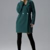 Loose-fitting coat with kimono sleeves, perfect for modern styling. Double-breasted model with decorative buttons and pockets. Made of beautiful fabric in fashionable colors. Feminine and timeless.