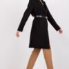 Women’s long sleeve coat with a button closure. On the sides there are slip pockets. Additionally, the coat has a belt.