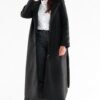 Coat made of pleasant, warm fabric with a maxi length. The straight cut of the coat and sleeves optically slenderize the silhouette. Fastened with three large buttons and additionally tied with a belt. The coat is fully lined. A great choice for going out with friends, but also as an outer garment for a corporate meeting.