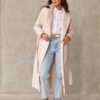 The model is tied at the waist, has pockets in the front and a slit in the back. Tiered coat will be a perfect choice for any outfit and for any occasion. Wear it over a dress for a party or over jeans when you go out on the town in the evening. The classic cut with a belt that emphasizes the waist is timeless. The coat has a lining. In addition, the coat is wool, so it will guarantee you warmth during autumn days. The product is available in several color variants. The product is manufactured and sewn in Poland.