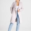 An unbuttoned coat with a large lined collar. It can be worn in two ways, with or without the attached belt. Inner pockets on the sides.