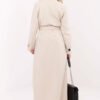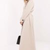 A long women’s coat is an elegant proposal for the transitional seasons of autumn, winter, and spring. Made of high-quality polyester, in a classic, smooth pattern, it combines style and functionality. The model with lapels, a wide collar, and a double-button fastening emphasizes the chic character of every styling. The coat has slip pockets, a tie belt at the waist, and a lining, providing comfort and convenience. It will work perfectly in everyday, formal, and office stylings, adding elegance and class to every woman.