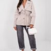 Stylish women’s trench coat in a casual edition, perfect for everyday outings and work. A transitional model that will work well in autumn, winter, and spring. The smooth pattern emphasizes the timeless character of the coat, and the short length gives it a modern, lightweight look. Made of high-quality polyester, lightweight and comfortable to wear. The coat has long sleeves, a single-breasted button fastening, and a waist tie belt that allows you to adjust the fit to the silhouette and accentuate the feminine figure. Practical slip pockets add functionality and daily comfort. A versatile choice for work and everyday wear, combining classic style with modern flair.