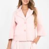A short transitional women’s coat is the perfect choice for women who appreciate a casual style and versatile solutions for everyday wear and work. It will work perfectly in the autumn, winter, and spring seasons, adding a stylish touch to many outfits. The model made of foam material based on polyester with added elastane stands out with a varied texture that gives the whole a modern character. The fabric is pleasant to the touch, elastic, and fits well on the silhouette, ensuring comfort while wearing. The coat has no insulation or filling, making it ideal as a lightweight outer layer in transitional periods. The short length and 3/4 sleeves subtly emphasize the silhouette and give the outfit a lightness. The classic collar with lapels adds elegance, and the single-row button closure emphasizes the timeless character of the model. Practical slip pockets increase functionality and convenience of use. It is a versatile coat that can easily be matched with both elegant trousers and a shirt, as well as more casual, everyday outfits.