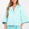 A short transitional women’s coat is an ideal proposal for women who appreciate a casual style and versatile solutions for everyday and work. It will work perfectly in the autumn, winter, and spring seasons, providing a stylish complement to many outfits. The model made of foam material based on polyester with elastane stands out with a varied texture, which gives the whole a modern character. The fabric is pleasant to the touch, elastic, and fits well on the silhouette, providing comfort when worn. The coat has no insulation or padding, making it perfect as a light outer layer in transitional periods. The short length and 3/4 sleeve subtly emphasize the silhouette and give the outfit a lightness. The classic collar with lapels adds elegance, and the single-breasted button fastening emphasizes the timeless character of the model. Practical slip pockets increase functionality and comfort of use. It is a versatile coat that you can easily match with both elegant trousers and a shirt, as well as more casual, everyday sets.