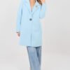 An elegant women’s coat with a classic cut is the perfect choice for the transitional season, autumn, winter, and spring. The model will work perfectly in both everyday stylizations and as outerwear for work, emphasizing a professional and stylish look. Made of high-quality foam material based on polyester with elastane, the coat is light, elastic, and pleasant to wear. The fabric holds its shape well while providing comfort and freedom of movement. The unlined model is suitable as a versatile cover for warmer, transitional days. The coat has a standard length and long sleeves. The classic collar and lapels give it a timeless elegance. The single-button closure emphasizes the minimalist character of the cut, while the practical inset pockets increase functionality. The whole is complemented by a decorative brooch placed on the lapel, serving as a stylish, feminine accent.