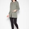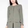 Straight cut, zipped coat finished with decorative pockets and a striking slit at the zipper. Decorative zippers at cuffs and collar. Perfect for everyday styling.