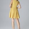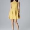 Sleeveless dress. With a fitted top and feminine, low neckline. Model cut at the waist with a flared, arranged in wide folds bottom. Dress perfectly emphasizes and slims the waist.