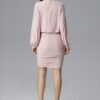 Great dress with long wide sleeves finished with a cuff. The top of the neck is pleated, the bottom of the dress with side pleats. At the back fastened with a covered zipper. It is a typical must have for an evening out.