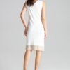 Elegant dress in stretch fabric, decorated with chiffon inserts, zipped at the back, the dress is unlined and without pockets.