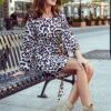 Comfortable dress for everyday and special occasions, tied at the waist with leopard print fabric. Polish product. Made of pleasant to the touch warm material. Brand numoco.
