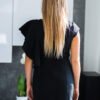 Fitted dress with butterfly sleeves. Dress fastened with a covered zipper. Dress with a beautiful frill throughout the length of the dress. Ideal for many occasions.