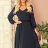 Airy chiffon midi dress with neckline and frills, bottle green. Polish production. Numoco brand.
