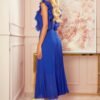 Emily – pleated chiffon dress with a neckline and ruffles. The skirt has a fashionable 7/8 length and fastens at the back with a covered zip. Color: cornflower blue. Brand numoco. Polish production.