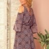 Airy dress with flared double sleeves, neckline and elastic waistband. Moroccan navy blue pattern. Brand numoco. Polish production.