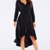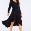 Ladies dress made of natural viscose. Envelope neckline adds an elegant style. A waist tie emphasizes the figure. Finished with overlapping frills that add lightness. Sleeves finished with elastic bands allowing for easy adjustment of their length. Product made in Poland.