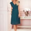 Chiffon dress with neckline and ruffles on shoulders. Dress in bottle green. Brand numoco. Made in Poland.