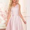 A flared dress with a heart-shaped neckline. Dress in powder pink with glitter. High-quality fabric with a pleasant feel. Brand numoco. Polish product.