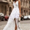 An extraordinary chiffon maxi dress that makes a spectacular impression. This is our new Dolores, let yourself be enchanted by its charm. It is so light and airy that it will sway sexily with you in every movement. The top of the dress has a V-shaped neckline at the front and back, thanks to which you will beautifully emphasize your bust and back line. For a better fit there is an elastic band sewn into the waistband and there is also a drawstring which allows you to adjust the dress perfectly at the waist. The side slit adds lightness and emphasizes tanned legs. The perfect cut guarantees comfort while wearing. Dolores will be perfect for special events. It will also be an ideal companion for walks on the beach. The dress was designed and sewn in Poland.