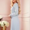 Pleated chiffon dress with neckline and long sleeves. The dress comes in a gray color. Brand numoco. Polish production.
