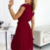Chiffon dress with neckline and frills on the shoulders. The dress comes in a burgundy color. Brand numoco. Polish production.
