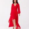 Next to this dress you can not pass indifferently. Beautiful shades will give your styling a noble and timeless look. You do not need to add much to it, because here the dress plays a starring role. Asymmetrical dress in maxi length. A flared hem with a slit, a top with a layered neckline and amazing long buffet sleeves with decorative slits. The sleeves are finished with an elastic band. The dress is tapered at the waist, perfectly highlighting the waist area. Zippered at the back with a delicate back exposure. The dress has a sewn-in petticoat, so the fabric will not show through. All you need is a delicate piece of jewelry, and you will delight everyone around you. The cut and length will be perfect for any figure, will give lightness to the silhouette and optically add a few centimeters of length. The airy and delicate fabric will gently wave with your every move, leaving an unforgettable impression. The product is made and sewn in Poland.