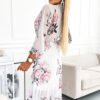 Chiffon pleated midi dress with buttons and long sleeves. Dress made of fabric roses on a white background. Numoco brand. European production.